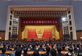 央广网北京10月21日消息(记者高艺宁王晶)21日上午,纪念红军长征胜利80周年大会在人民大会堂举行。