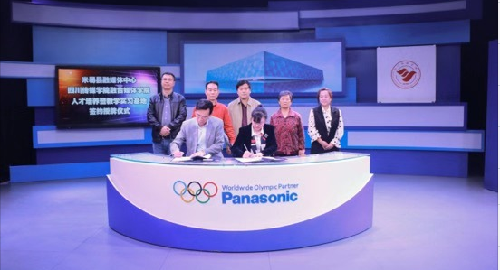 四川传媒学院融合媒体学院与米易县融媒体中心在视听中心4K演播室联合举行人才培养暨教学实习基地签约授牌仪式。