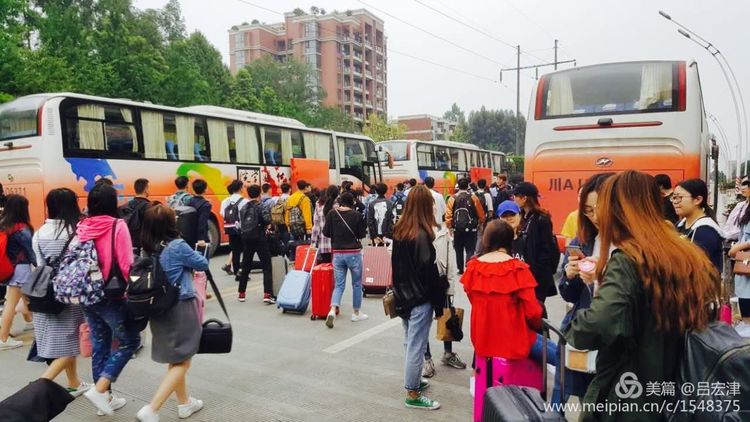 出发了!10台校车满载着近500余名川传新新学院新闻传播专业大一的学子,浩浩荡荡向着四川传媒学院阆中实习基地挺进。