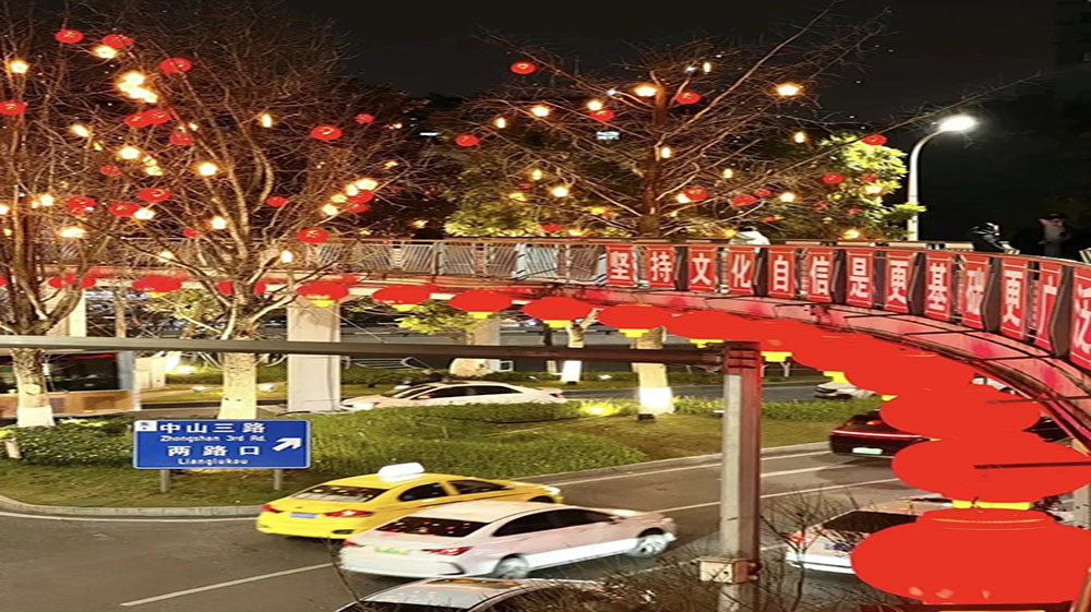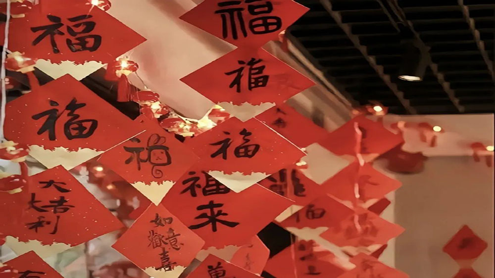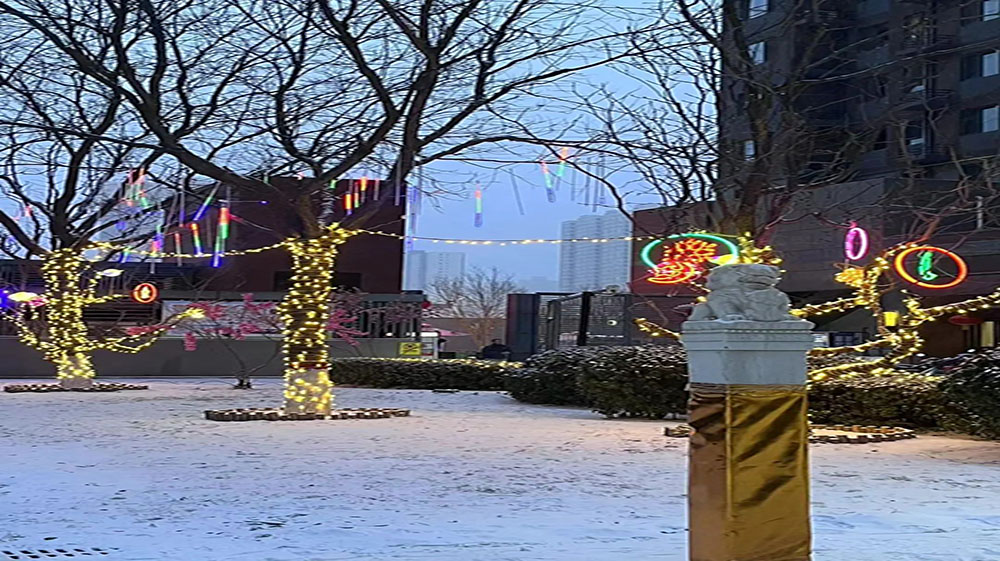 距离过年还有不到十天了, 在我的家乡,居委会用写满祝福的新年装饰装点了老年活动中心,街上也挂满了喜气洋洋的彩灯。
