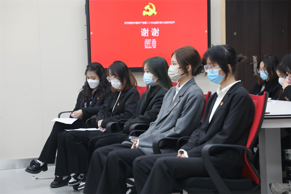 最后,刘芯灵同志讲述了新青年与二十大的关系,强调青年强则国家强,当代中国青年生逢其时,施展才干的舞台十分广阔,实现梦想的前景无比光明,呼吁全体党员应当要听党话,跟党走。要更加坚定自身理想信念,在实际生活中严格要求自己,更好的发挥党员的先锋模范作用。