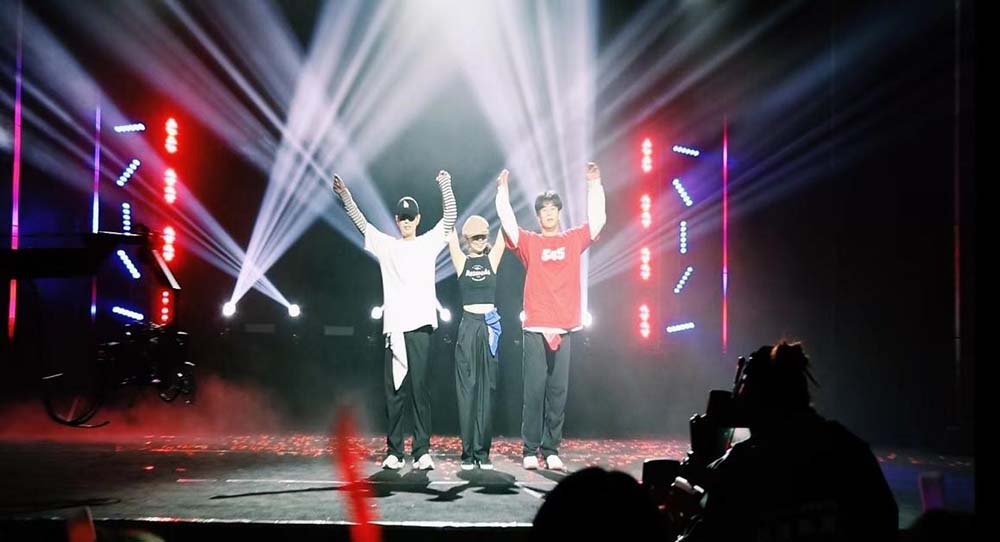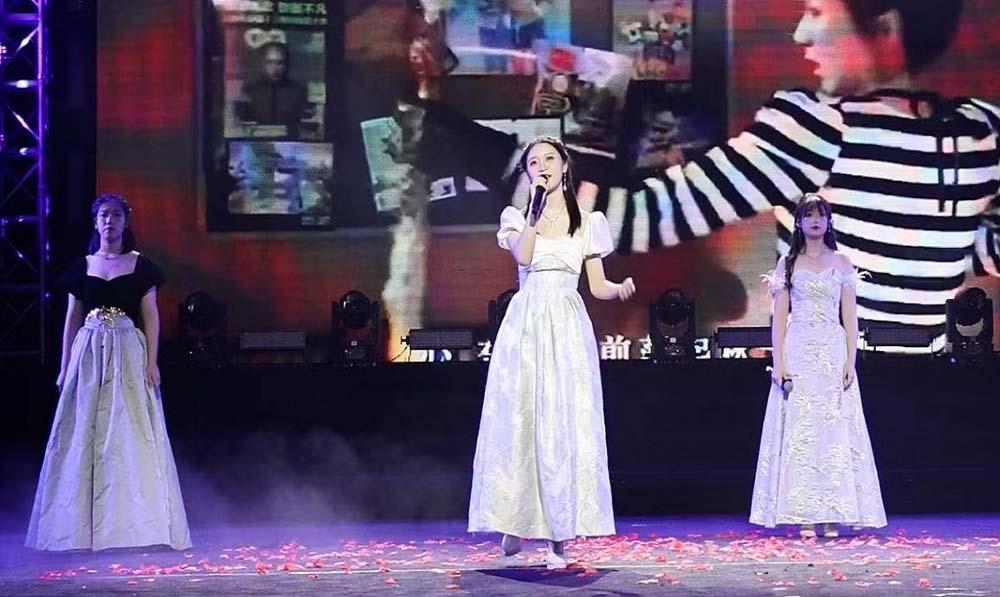 歌曲《有你在》和《爱的回归线》《光的方向》旋律优美,传递出满满的青春气息。聚光灯撒下,“爱凝结了时间”悠扬的歌声给同学们带来了前进的动力和不轻易言弃的勇气。“根本拦不住,你拦不住我......”《赛道模式》这首狂野炸裂的说唱音乐唱嗨了现场,再次将活动现场的氛围推向顶点与高潮,尽情唱出了融媒学院学生的自信与勇往直前、以及敢于拼搏的冲劲!