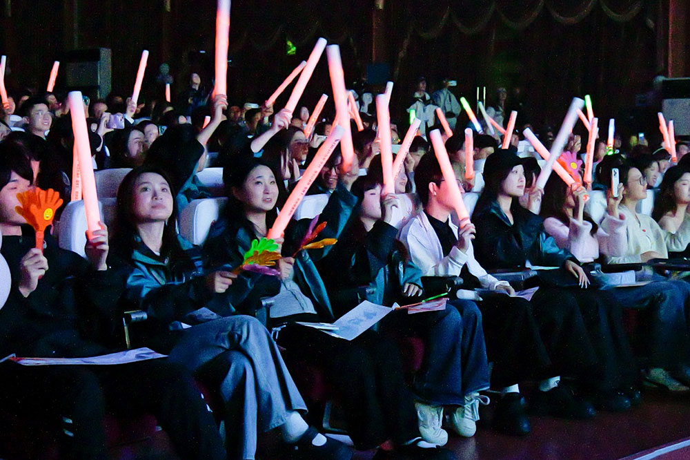 在众人的期盼中,晚会筹备工作紧锣密鼓地进行着。聚光灯在舞台中央闪耀,将整个演播厅装点得如梦如幻。师生们准时落座,期待的目光聚焦在舞台上,一时间,演播厅内热闹非凡,充满了欢声笑语。