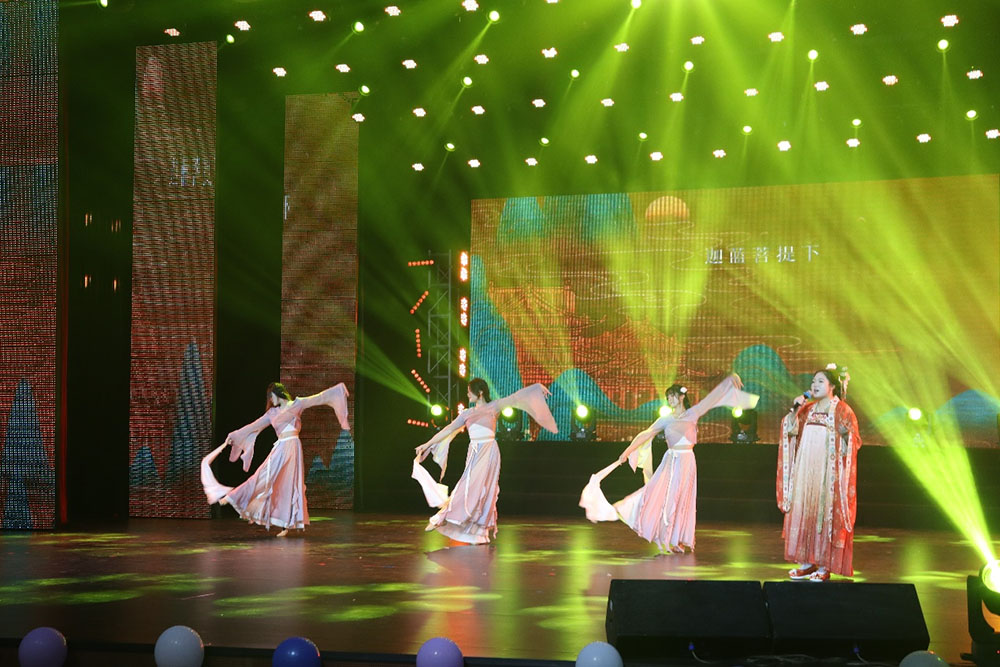 接下来一曲《逆水行船》更是将晚会推向了高潮。古筝、鼓、笙等多种乐器齐上阵,共同演绎了一首充满中国古典艺术之美的乐曲。师生们被这首曲目深深吸引,目不转睛地注视着舞台上的每一个细节。